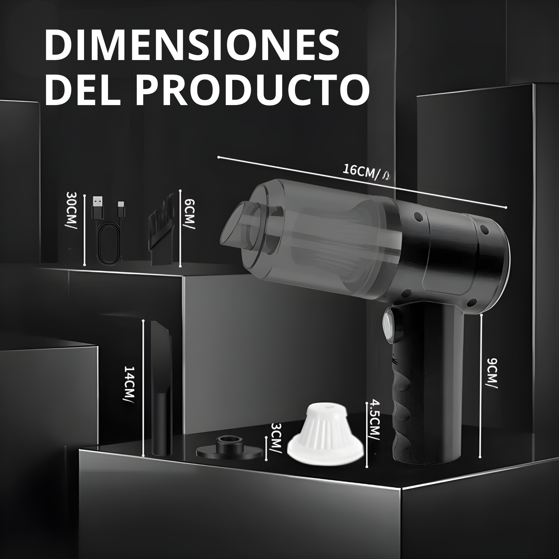 Succión y soplado 3 en 1 con carga USB, diseño compacto y máximo rendimiento para dejar tu hogar y auto impecables en la mitad del tiempo, sin esfuerzo y sin límites.